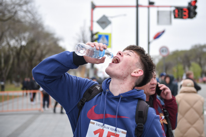 «Беги, Поля, беги!» — кричал свой 12-летней дочке министр физической культуры и спорта Амурской области Дмитрий Кутека на эстафете «Амурской правды». Полина домчалась до финишной черты и вместе с командой лицея № 11 завоевала серебро. «Не расстроилась, рада второму месту», — скромно призналась пятиклассница, добавив, что занимается не бегом, а фигурным катанием. Эстафета АП — это не только спортивные победы, а 79-летняя традиция, объединяющая поколения амурчан в честь Дня Победы. Школьники, студенты, энергетики, банкиры, пограничники, спасатели, полицейские и иностранцы — бежали все. Азарт, нервы и эмоции — в репортаже «Амурской правды».
