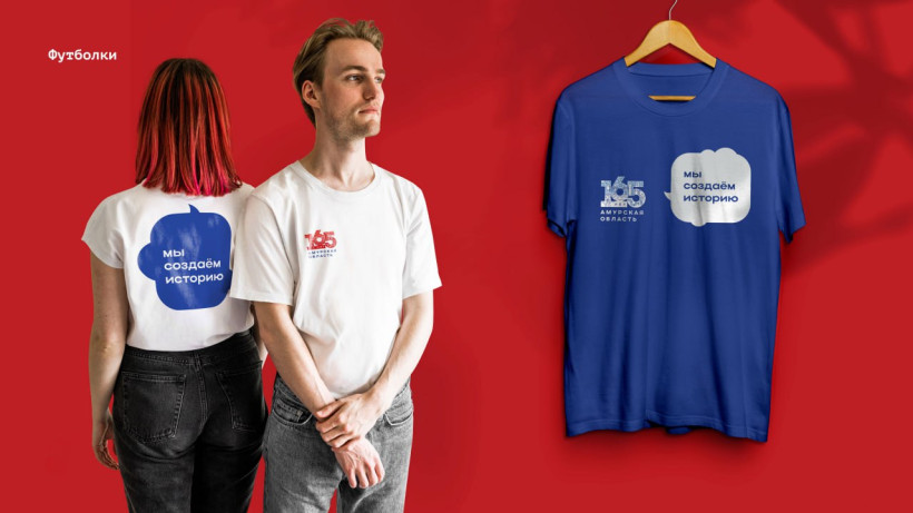 Всю концепцию инициаторы построили на фразе «Мы создаем будущее». Она, как и символичная цифра 165, будет представлена практически на всех предметах, которые изготовят к празднованию юбилейного дня рождения Приамурья. Фирменный стиль отображен на футболках, бейсболках, кружках, блокнотах, дипломах и другой печатной продукции. При этом, разработчики выбрали цветовую гамму в соответствии с колористикой государственного флага.