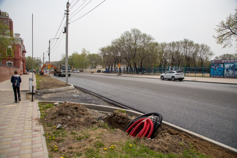 На третьем этапе от Батарейной до школы № 22 на Ленина—Железнодорожная сняли старое покрытие. Сейчас специалисты устанавливают бордюры и уже приступили к ремонту колодцев, сообщили в пресс-службе благовещенской администрации.