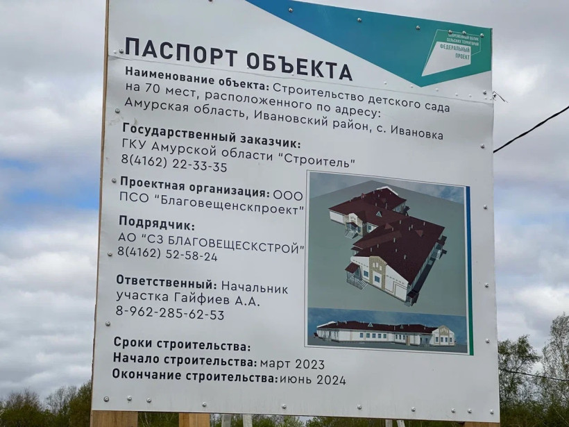 — Детский сад будет одноэтажный, общей площадью 2 400 «квадратов», — рассказал начальник отдела строительного контроля ГКУ Амурской области «Строитель» Сергей Плотников. — Контракт с подрядной организацией заключили в марте, завершить все строительно-монтажные работы должны летом следующего года. Сейчас на объекте ведется бурение под сваи, их забивка начнется в ближайшее время.