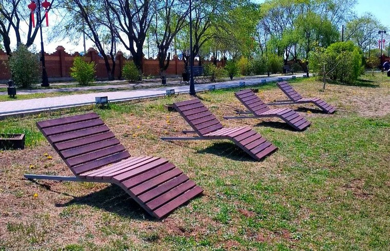 — Мы давно, уже года три думали об установке шезлонгов. Некоторые девушки приходят и на газонах загорают. Хотелось, чтобы у нас была зона отдыха для загара. Долго думали, искали варианты. Из дерева — дорого, и не сильно много компаний делают такие шезлонги. Потом появилась компания, которая изготавливает скамейки из эколамелей, они стоят и в парке Дружбы, и на территории ОКЦ. Еще в прошлом году мы договорились с ней и нам сделали по заказу шезлонги, — прокомментировала «Амурской правде» заведующая парком Дружбы Елена Мосиенко.
