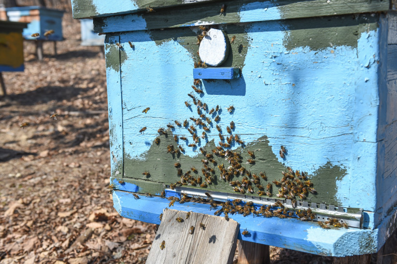 — У меня сейчас 30 рабочих ульев, — показывает свои владения Пётр Макушкин, бесстрашно открывая домики с жужжащими работниками. — Зимой пчёлы живут в специальном помещении, температура строго должна быть +2.. +4 градуса, а лётное для пчёл время наступает при температуре воздуха +12.. +14 градусов. Тогда мы вытаскаем домик на улицу, открываем и даём им облетаться. После зимы пчёлы очень злые: открываем — и тикать сразу надо, — смеётся пасечник.