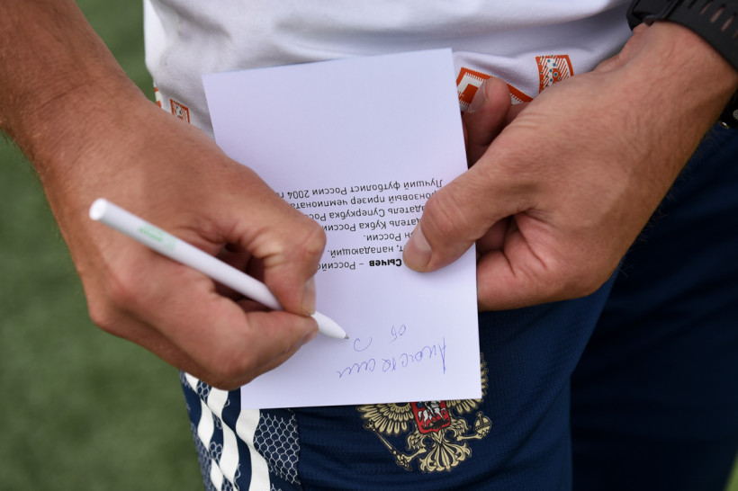 Журналист «Амурской правды», как настоящий фанат, взяла автограф у Дмитрия Сычева – для сына, увлеченного игрой. Фото: Алексей Сухушин