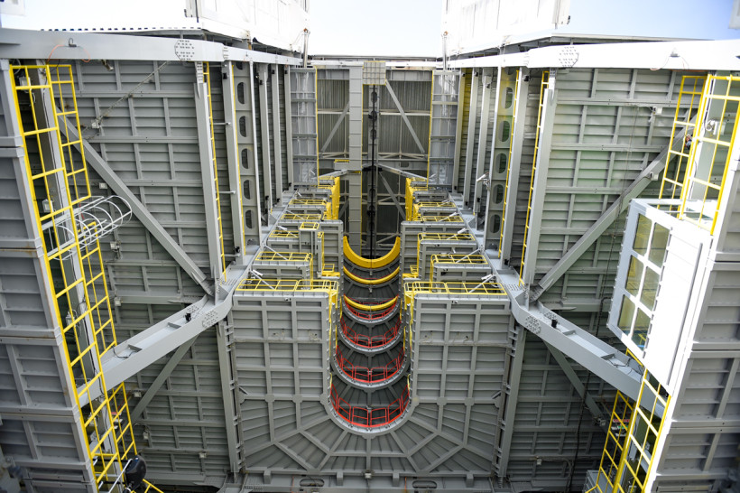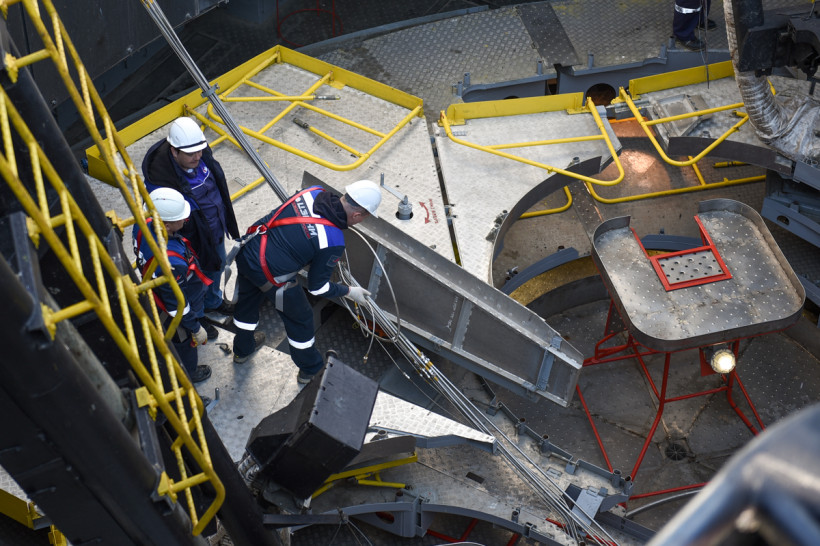 После награждений и поздравлений сотрудники космодрома возвращаются к работе — необходимо привести в порядок мобильную башню обслуживания. Чашу башни, куда непосредственно устанавливается ракета, проверяют. Многочисленные «провода», которыми РКН присоединяется к системам, придется заменить — под воздействием огромных температур на старте они выгорают.