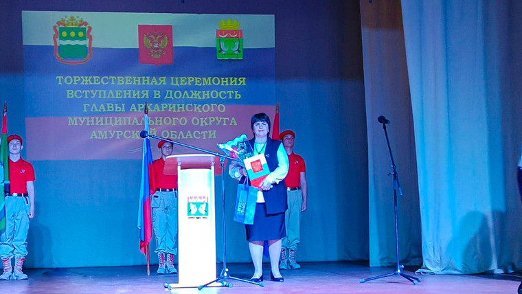 В Архаринском округе в среду, 31 мая, состоялась инаугурация нового главы. Руководить муниципалитетом ближайшие пять лет будет Татьяна Шутрина, до этого занимавшая должность начальника отдела образования администрации. За ее кандидатуру проголосовали 10 из 14 членов окружного Совета народных депутатов.