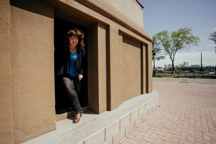 Замок в маленькой тугой дверце в одной из опор благовещенской Триумфальной арки с трудом поддался ключу. Распечатав нечасто отпирающийся вход, мы согнулись и пробрались внутрь главного символа амурской столицы. В кромешной тьме фонарик высветил «внутренности» Триумфальной арки — оранжевые кирпичные стены и крутые железные ступени. Чем выше поднимались, хватаясь в темноте за перила, тем становилось светлее. Последний пролет, ведущий на крышу царских ворот, оказался самым крутым и опасным. Преодолев его, попали на тесную площадку.