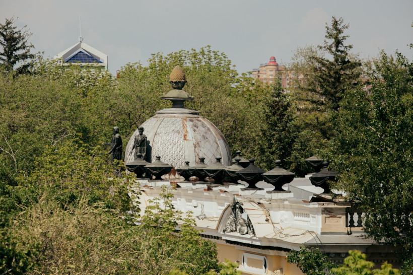 Интересно, что обильные снежные осадки крыше арки совсем не страшны. «Снег, который за зиму накапливается, убирать не нужно. Крыша обустроена на железобетонных плитах перекрытия и выносит очень большие нагрузки, поэтому снег весной тает и через крытые трубы водооотведения уходит в канализацию», — поясняет архитектор. К слову, на первой арке водосток, как это видно на исторических изображениях, пролегал снаружи строения, прямо по боковому фасаду, теперь же «лицо» города не имеет ничего лишнего. Спрятать трубы удалось благодаря современной плоской кровле с внутренним водостоком, а в 19‑м веке крыша была шатровой.