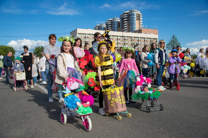 Парад под знаком семьи: благовещенцев в День города удивляли близнецы и невесты