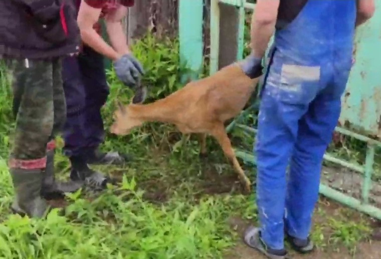 Видео спасательной операции опубликовал телеграм-канал «ЗАТО космоград». Достав косулю из ворот, люди положили ее на землю. Животное лежало обессиленное, в шоковом состоянии.
