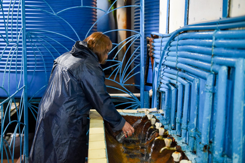 Десять утра — время очередного исследования. В руках у лаборанта Натальи Марышевой подставка с большим количеством бутылочек. «Каждый час берем пробы воды из каждого фильтра и отправляем на анализ, — рассказала она. — Это уже второй этап исследований — первый был еще на линейном водозаборе, как только подрусловую воду добыли из скважины. Контроль у нас постоянный на каждом этапе».