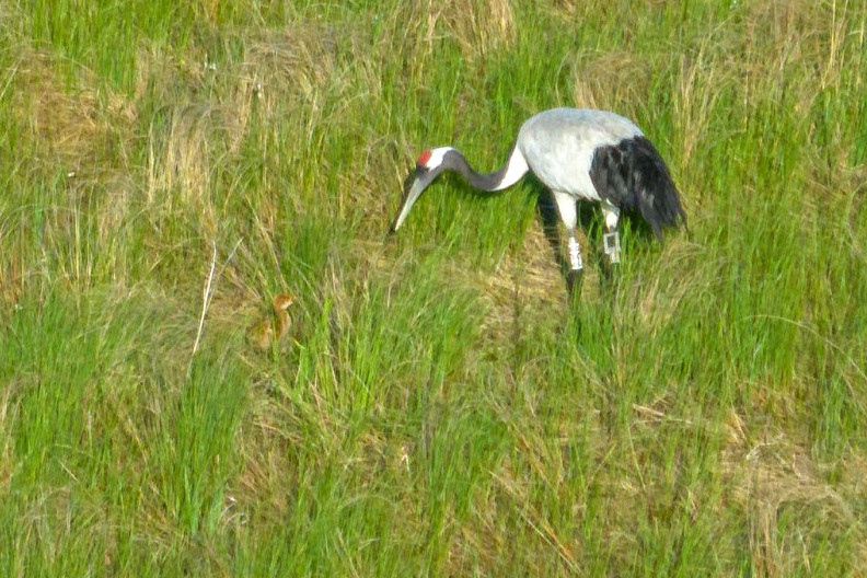 У известной в Приамурье пары журавлей Снежинки и Подснежника вылупился первый птенец