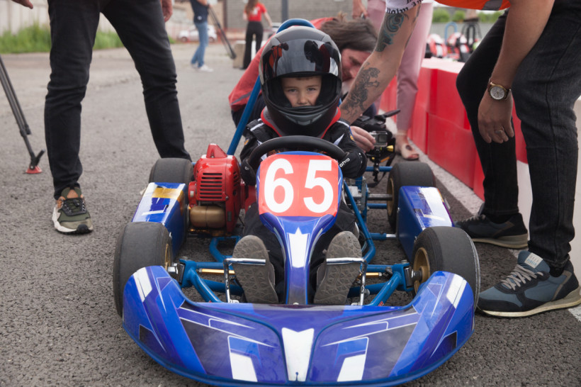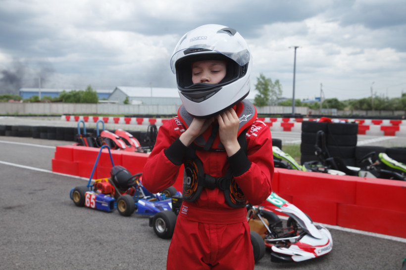 Большие и маленькие картинги вдоль красно-белых бордюров ждут желающих стать гонщиком. Трое мальчишек уже переоделись в экипировку и дожидаются команды тренеров. Все они занимаются картингом всего полтора месяца, но держатся как профессионалы. Перед тем как сесть за руль, изучают техническую часть – сам гоночный транспорт.