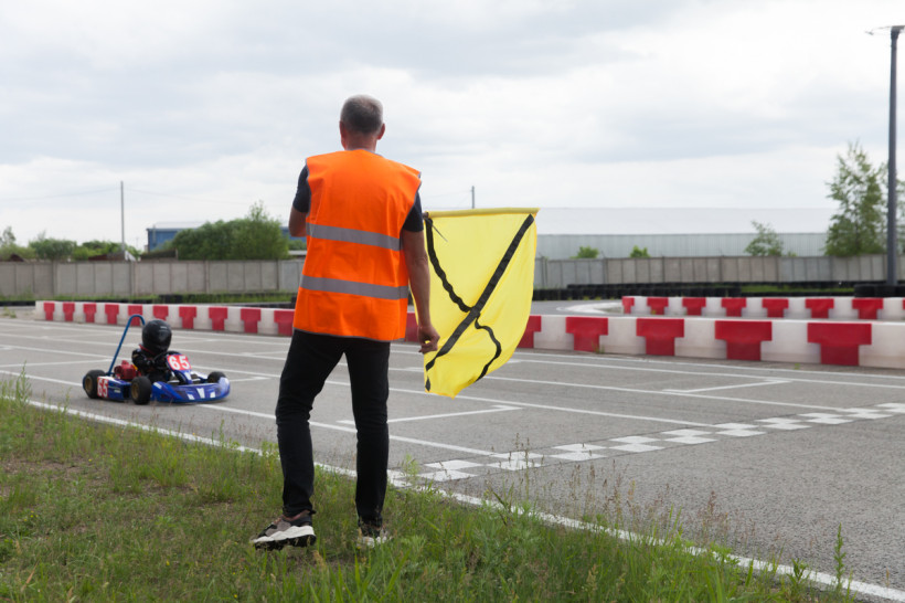 У судьи большой набор специальных флагов, чтобы «общаться» с гонщиками. А вот секундомер в руке не нужен — на трассе и самих картах установлены специальные датчики, которые фиксируют время. Данные выводятся на экран — и система сама считает, каков результат заезда. Кстати, остановить гонку можно в случае необходимости одной большой красной кнопкой. Установлена система в автономном передвижном доме — уникальном для нашего региона транспорте.