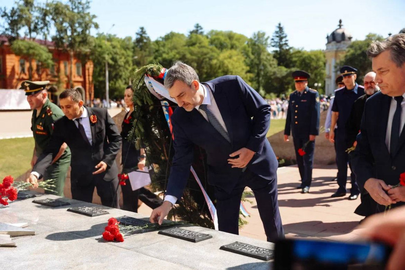 Губернатор Василий Орлов возложил цветы к Вечному огню у памятника воинам-амурцам