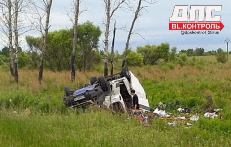 В 40 километрах от амурского Белогорска перевернулся грузовик с овощами и фруктами