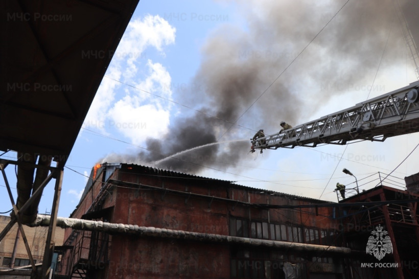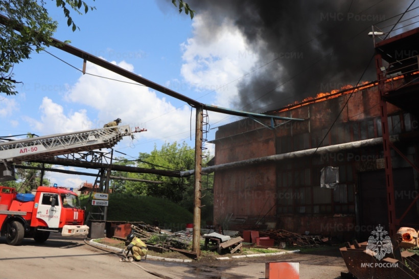 В Благовещенске 48 пожарных тушили крышу котельной на заводе «Амурский металлист»