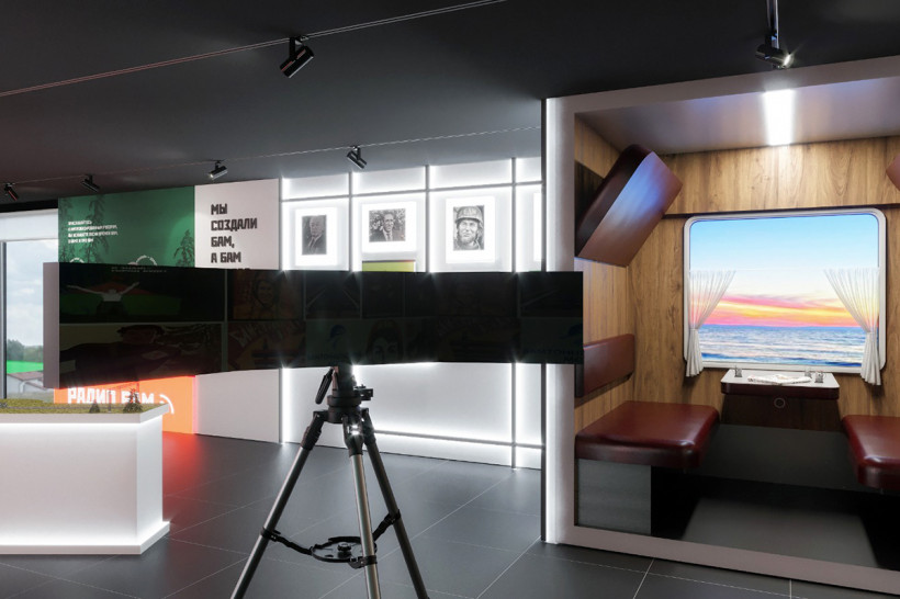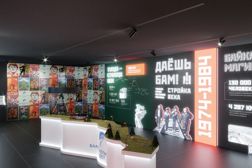 Так будет представлена Амурская область на Восточном экономическом форуме в этом году. Первый этаж — история строительства БАМа, в преддверии полувекового юбилея начала строительства магистрали. Приобщиться к атмосфере того времени поможет стена «Радио БАМ», где можно послушать радиоэфир с музыкой тех времен.