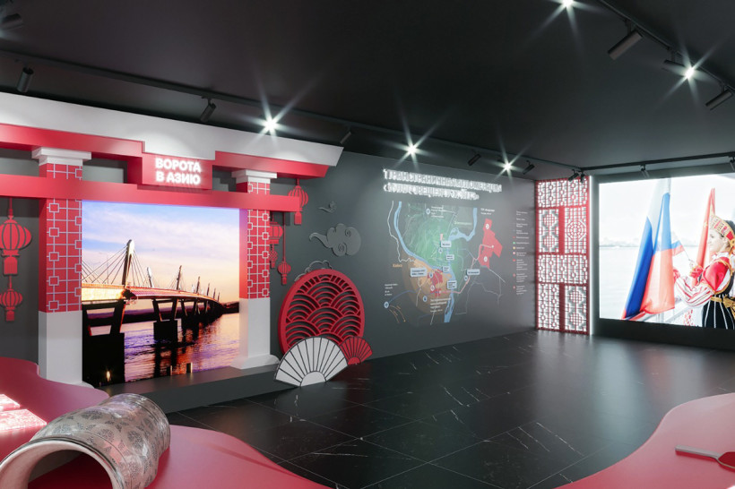 Второй этаж наглядно показывает, что Благовещенск открывает ворота в Китай: здесь будет все о партнерстве Приамурья с Поднебесной.