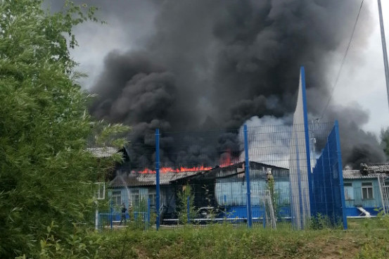 На пожаре работает техникаВ поселке Восточном Тындинского округа в четверг днем, 13 июля, загорелась школа. Читатели прислали в редакцию «Амурской правды» снимок с пожара. Над полыхающей крышей деревянного здания ввысь поднимается густой столб черного дыма.