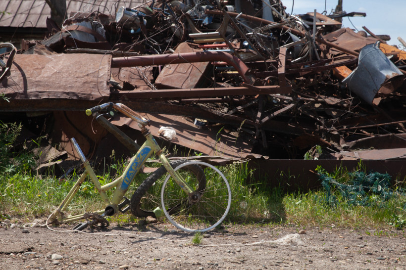 Однако напротив мертвых деревьев вовсю кипит жизнь. Дом семьи Хлевнюк больше напоминает усадьбу, которая вольготно раскинулась на половину улицы: добротный гараж, тут же стоящие автомобиль и квадроцикл, множество сараев, кучи из дров, пиломатериала, металлолома. А во дворе и за домом — душ, теплица, два трактора, мотоцикл и необъятного размера огород.