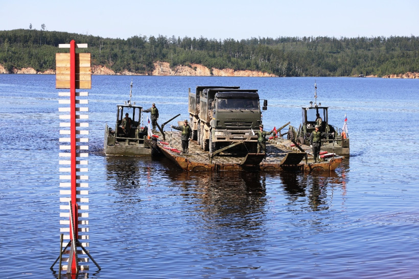 — Переправа обеспечивает перевозку техники и грузов на пароме, организованном при помощи звеньев понтонно-мостового парка, буксируемых специальными катерами, — сообщили в пресс-службе ВВО. — Ширина водохранилища в районе паромной переправы составляет около 1 100 метров, а в случае половодья порядка 1,5 километра. На участке переправы организована комендантская служба, в которую входит спасательная команда, контрольно-пропускной пункт, наблюдательный пост для замеров подъема уровня воды, пункт связи и другие элементы.