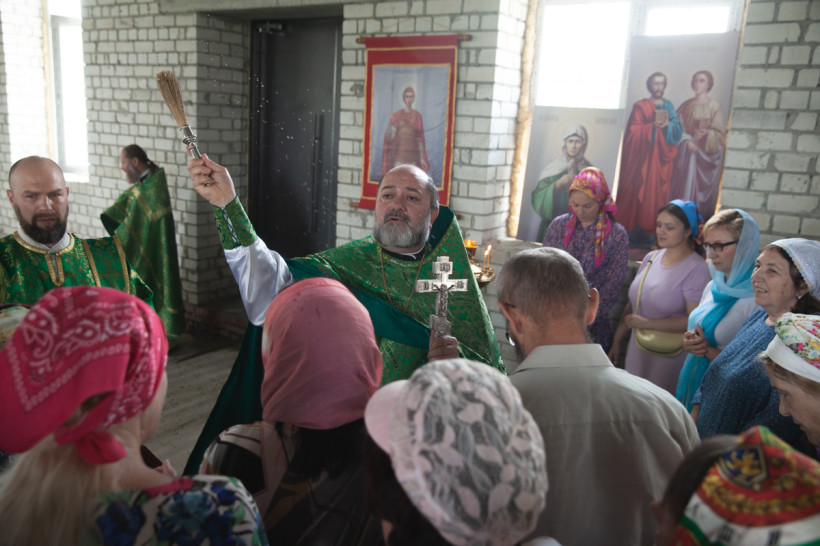 Но особенно службе рады сельчане, которые ждали этого события с 2015 года. Тогда на сопке в центре Чигирей, у Дома культуры, установили поклонный крест, обозначив место будущего храма.