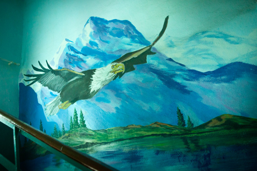 Уже несколько лет жителей дома на Центральной в селе Пригородном встречает целый зверинец: танцующие даурские журавли, скачущие лошади, парящий над озером горный орел, стоящие в разнотравье олени. Все это сделала Елена Черноголова, которая однажды решила: их подъезд должен перестать страдать от грязных следов, оставленных хулиганами, и расписала стены картинами с животными и птицами. Сколько времени пришлось потратить на оформление лестничных пролетов, чем сельская жительница заменила обои в собственной квартире и почему сделанные ею куклы больше не выходят на сцену, узнала «Амурская правда».
