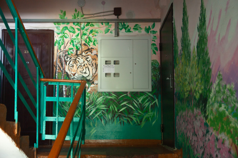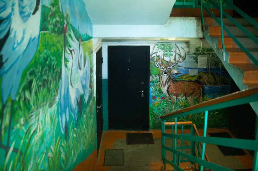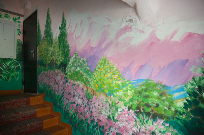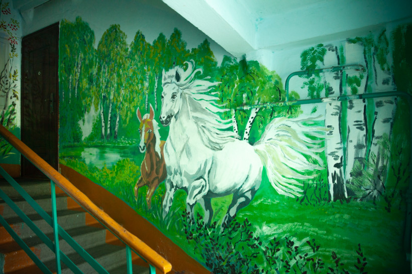Сначала картины в сельском многоквартирном доме появились в противовес хулиганам, которые собирались в подъезде. А потом жители увидели, что расписные стены — это оригинально, красиво и отличает их дом от многих других.
