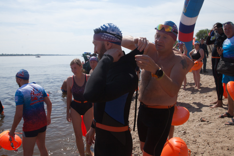 В единую команду заплыв объединил представителей самых разных профессий: юристов, учителей, бизнесменов, госслужащих. Поучаствовать в мероприятии решили 88 пловцов — как любители, так и титулованные спортсмены с внушительным опытом: Александр Брылин, Эдуард Ходаковский, Оксана Веклич, Владимир Ганин. Отмена заплыва через Амур и увеличенная вдвое дистанция не повлияли на их спортивный дух. Статус соревнований остался прежним — международный: вместе с россиянами амурскую реку переплывали и трое гостей из Поднебесной.