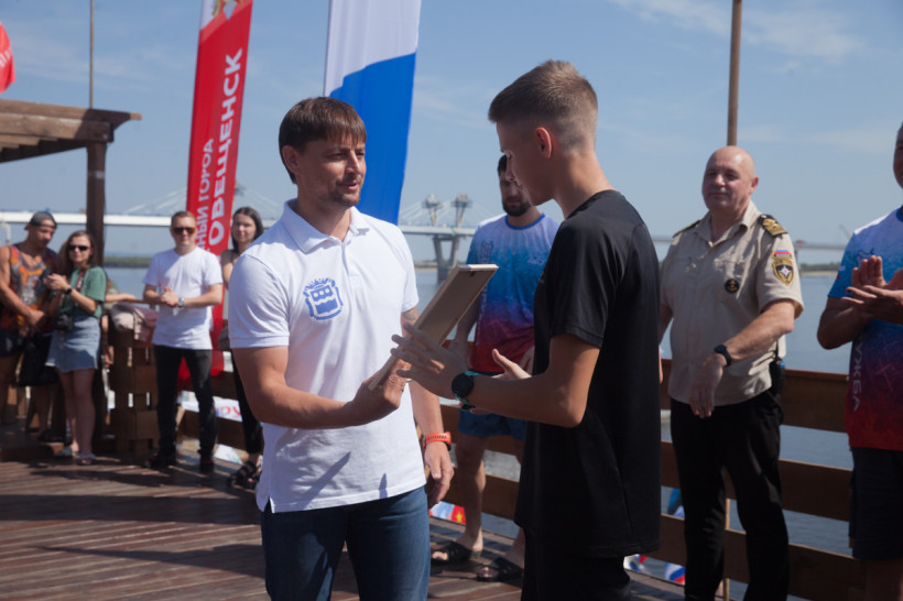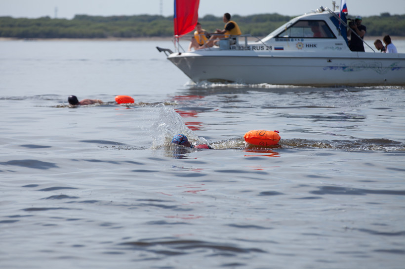 Вместе со всеми участниками дистанцию проплыли представители администрации Благовещенска и министерства физической культуры и спорта. Среди них — министр физической культуры и спорта Дмитрий Кутека и заммэра Максим Ноженкин.