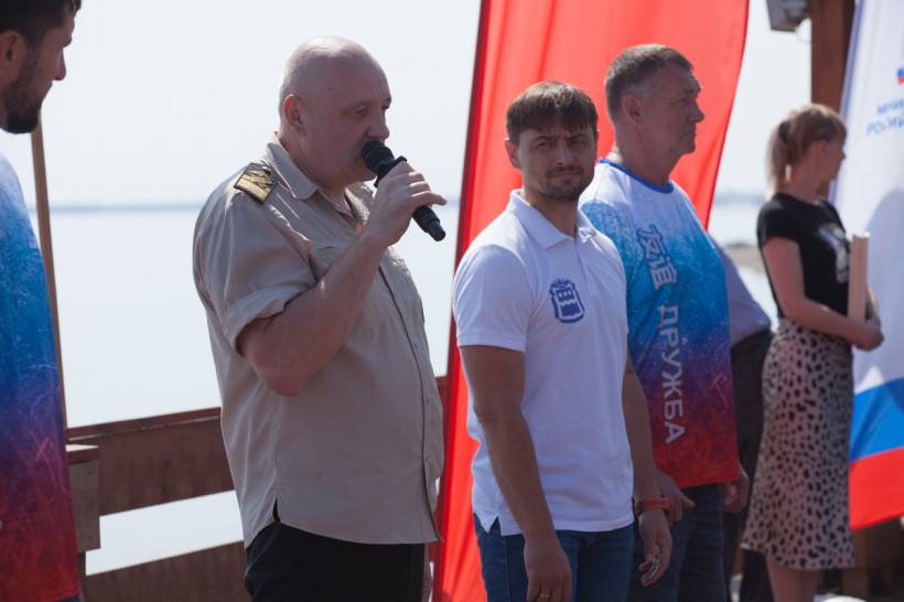 Перед стартом участники прослушали гимны России и Китая, а также инструктаж от главного государственного инспектора по маломерным судам Амурской области Александра Коваленко. Он рассказал о технике безопасности поведения на воде.