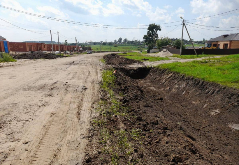 Ремонт отрезка дороги ведется в том месте, где второй год подряд строят новые дома. Возвести жилье для сотрудников своего предприятия решил глава местного крестьянского фермерского хозяйства Сергей Романов.