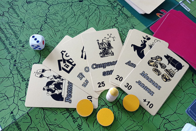 Впрочем, доход даже от подпольного самогона — мелочь по сравнению с золотыми горами, которые сулит амурский клондайк. Обязательный этап каждого круга — попытка отыскать месторождения золота. Определяешь место для прииска, кидаешь кубик: чет-нечет определяет наличие презренного металла в выбранной точке. Но если даже место окажется бесперспективным, всегда есть возможность заняться разбоем и ограбить проезжающего мимо артельщика. Для этого нужно отгадать число, загаданное ведущим.