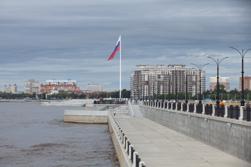 Как отмечает глава региона, в столице Приамурья установлен самый высокий флагшток Дальнего Востока — на высоте 75 метров развивается огромный Государственный флаг Российской Федерации. Он виден из любой точки новой набережной Амура и уже стал символом Благоовещенска и всего региона.