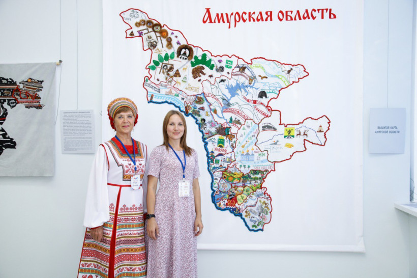 Амурские мастерицы представили вышитую карту Приамурья в Чувашии