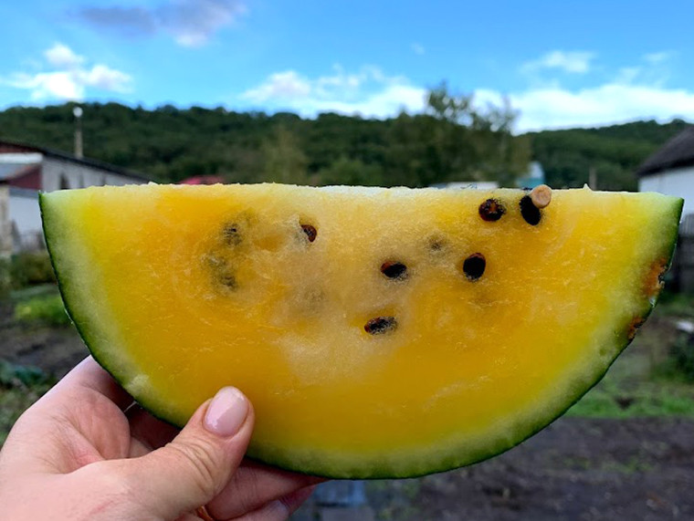 рбуз со вкусом манго: многодетная семья из Гродекова выращивает желтые арбузы на бесплатном гектаре