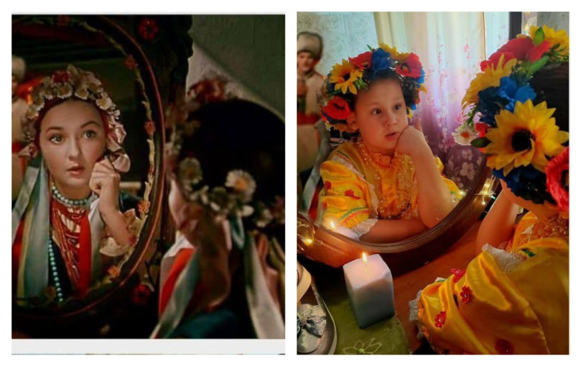 — Мы с дочерью воплотили в жизнь сцену из Ночь перед Рождеством или вечера на хуторе близ Диканьки, — говорит мама одной из учениц Ольга Миронова. — Моей дочери Маше 10 лет. Этот фильм я смотрела много раз, а вот она впервые. Сначала она не понимала, что это за кадр из какого фильма. Пришлось включать и смотреть вместе с ней. Пришлось ей объяснять многие слова, которые она не поняла. Но в итоге фильм ей понравился, да так, что на следующий день она ещё раз его пересмотрела сама, и даже пересказывала его старшей сестре и уговаривала посмотреть ещё раз вместе.