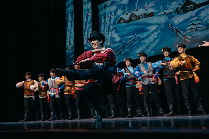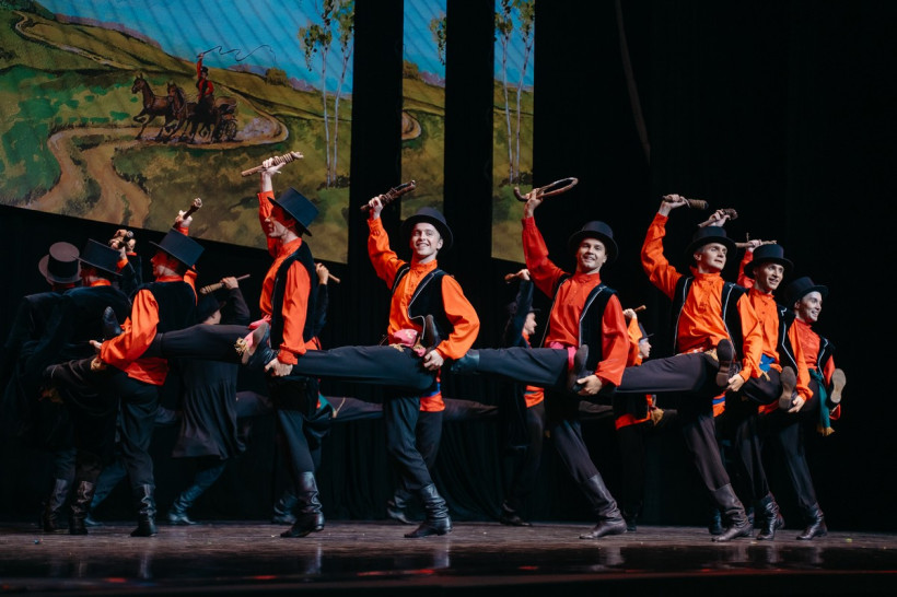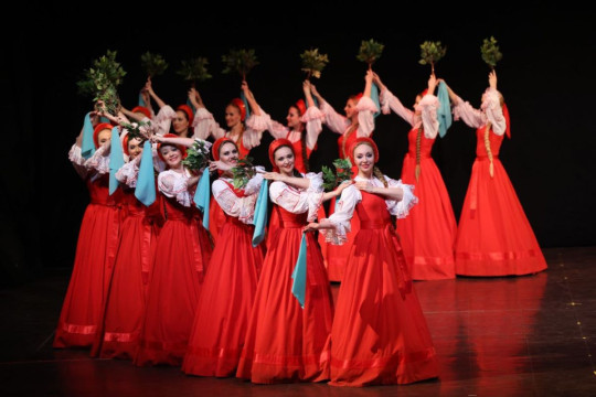 — Да, все верно. Чтобы работать в ансамбле, нужно уметь не только танцевать, но и петь. Не обязательно владеть академическим пением, но тональность, слух должны быть у всех. Наши артисты проходят уроки хорового мастерства. И перед каждым выходом на сцену проходит урок классического танца, а потом танцоры распеваются, потому что в программе есть номера, где они поют вживую. В ансамбле есть профессиональные вокалистка и вокалист. Еще один критерий отбора — это хорошая фигура и славянская внешность. Девушки должны быть стройными, как березка, высокими, примерно одного роста от 1 метра 75 сантиметров, мальчики — от 1,85. Но трюкачи в основном небольшого роста. Ребята все красивые, молодые, как на подбор, поэтому у нас часто в коллективе складываются семейные пары.