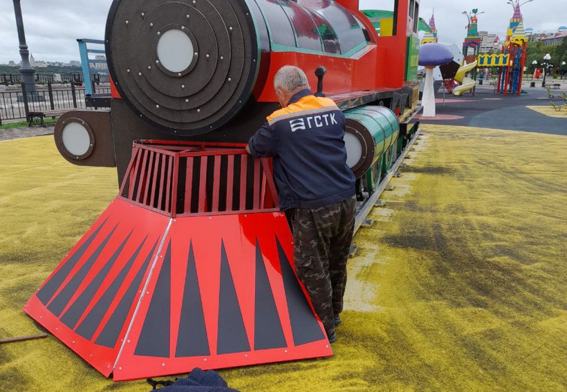 Детскому паровозику на набережной Благовещенска прикрутили металлический путеочиститель