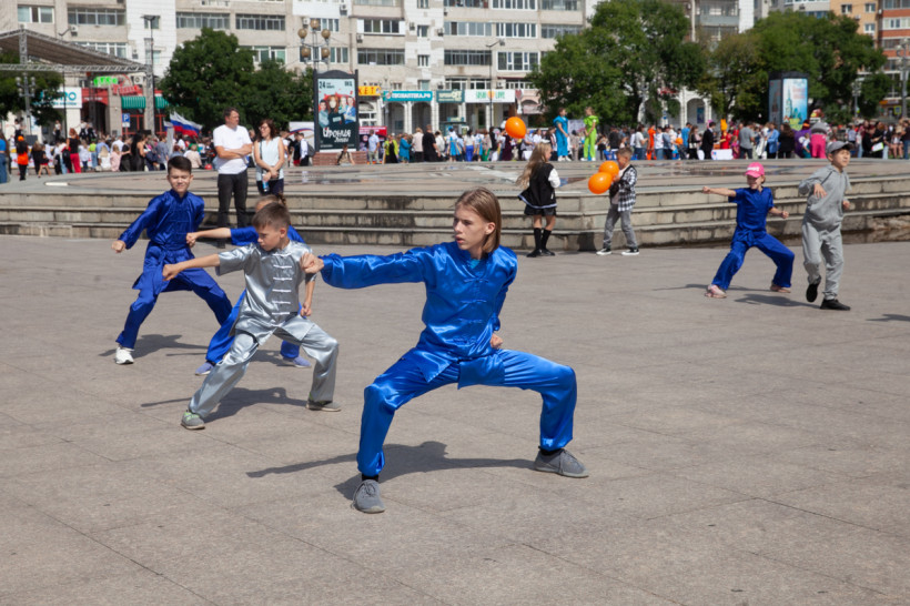 1 сентября на площади Общественно-культурного центра, как всегда, многолюдно. Линейки прошли, фартуки и банты переданы родителям — школьники пришли повеселиться на творческих площадках. Ребят развлекали ростовые куклы и творческие коллективы города, здесь же можно было записаться на различные кружки и секции. Каждое учреждение дополнительного образования детей презентовала свою работу.