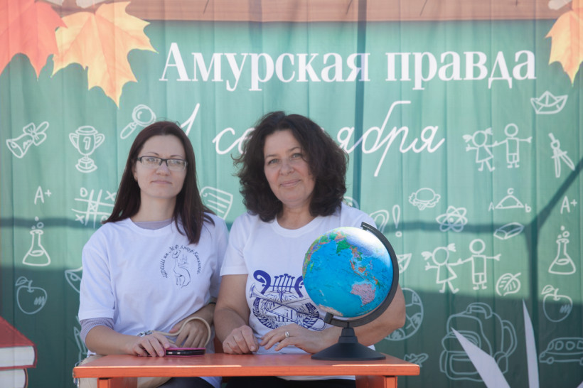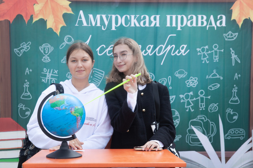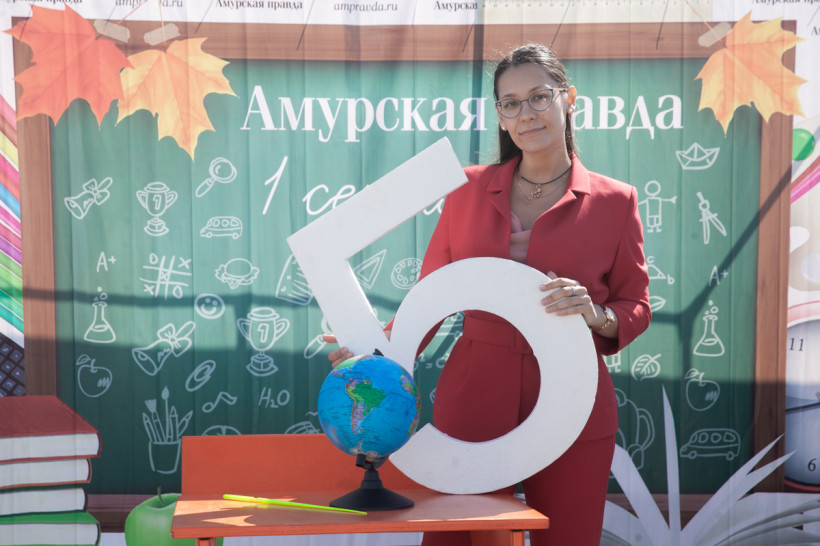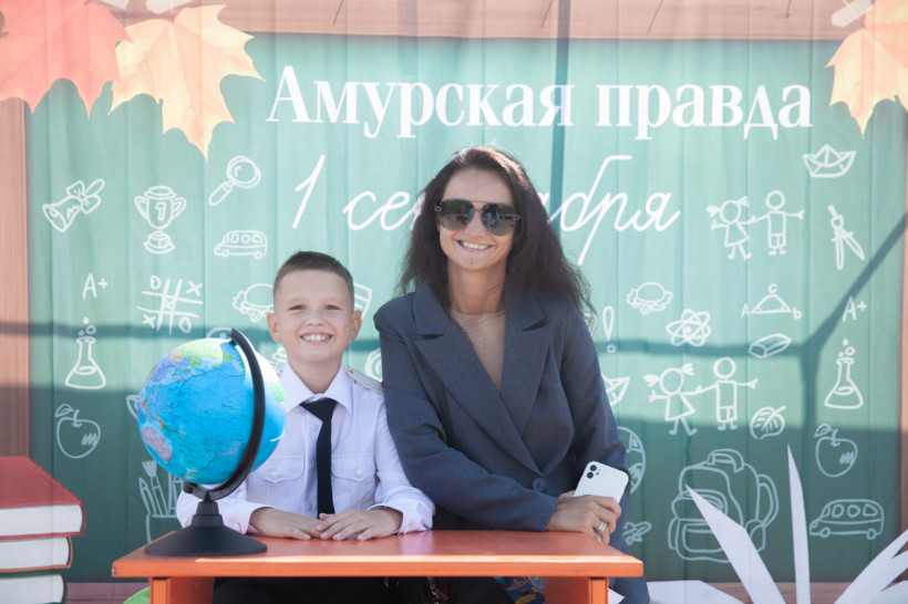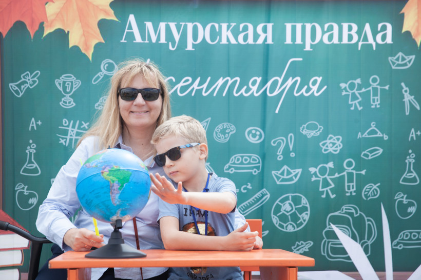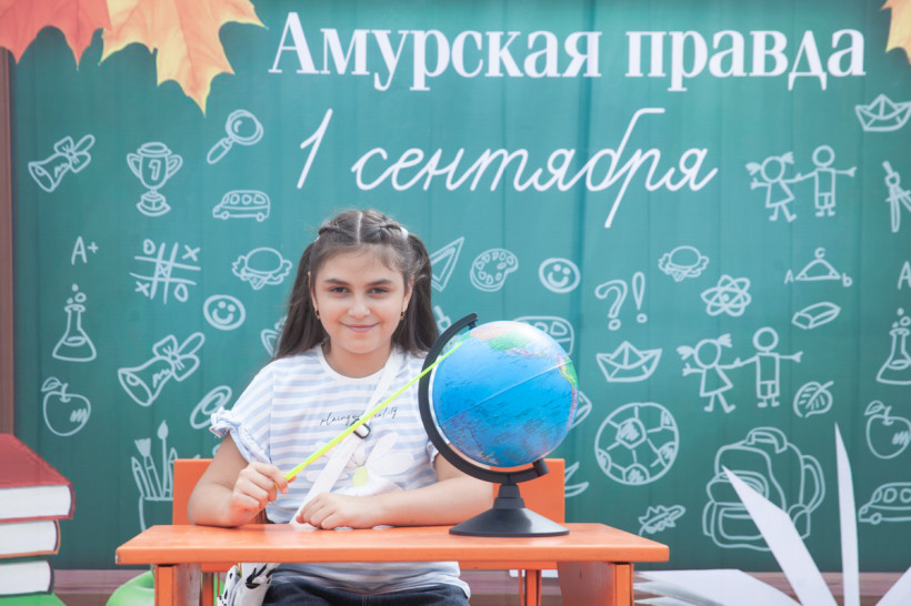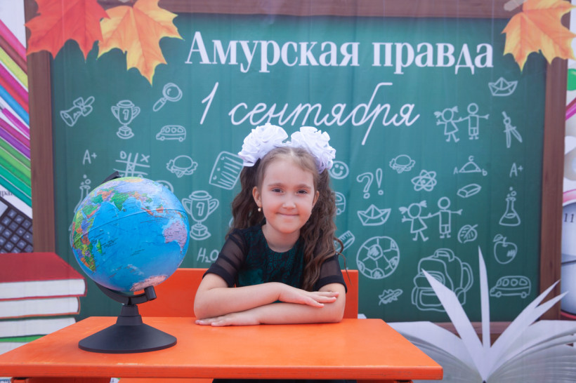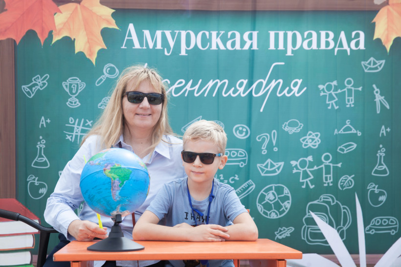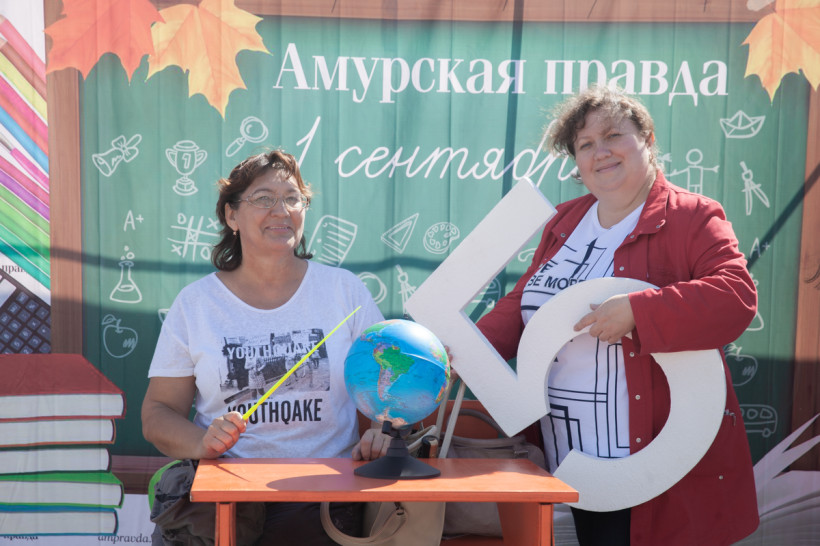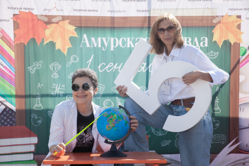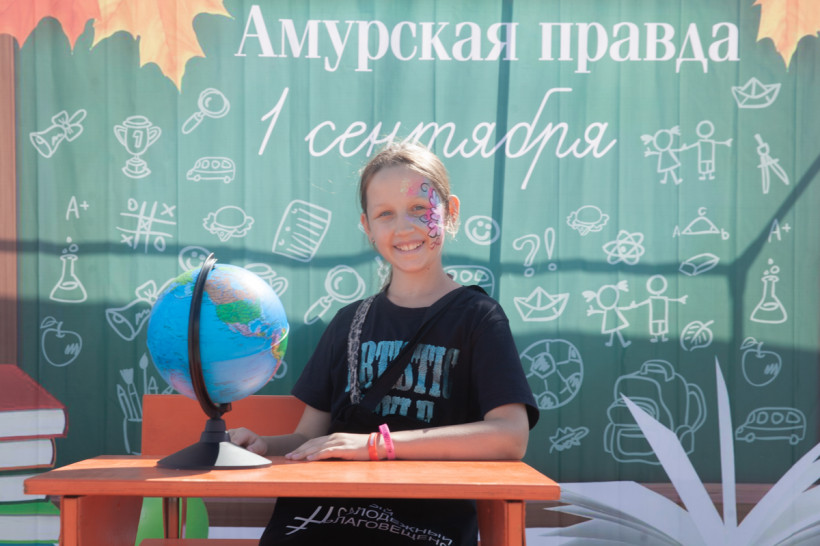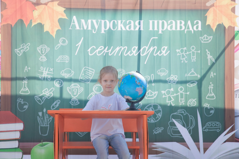 Фотозона «Амурской правды» была стилизована под школьный класс. Благовещенцы спешили сфотографироваться за партой с глобусом в руках на фоне школьной доски. Каждый, вне зависимости от успеваемости, хотел подержать в руках огромную пятерку из школьного дневника. Пусть она станет символом того, что каждый день наших читателей в новом учебном году пройдет только на отлично.