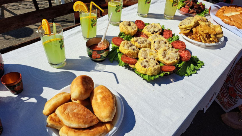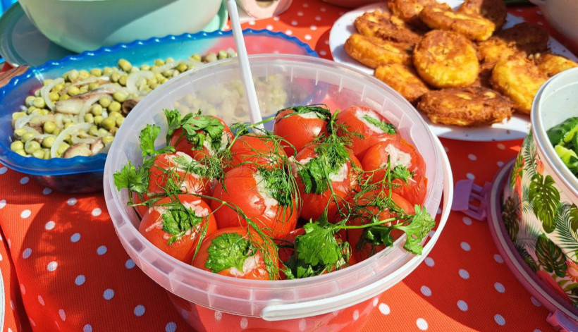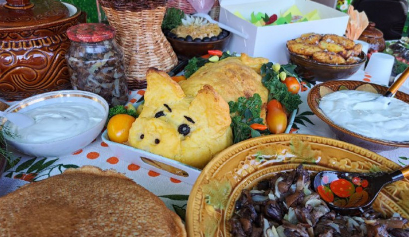 Пирожки, булочки, салаты, борщи, мясные блюда, помидорки фаршированные и в собственном соку, овощные оладьи, шаньги, селедочка с лучком, жареная рыбка, блины и, конечно, чай из самовара с баранками — и это еще не полный список того, что предлагали отведать хозяйки.