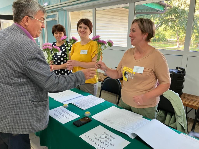 Самых молодых избирателей встречают с подарками. Например, в селе Зеленый Бор Михайловского района землякам, пришедшим на свои первые выборы, дарят цветы из сада председателя комиссии. Елена Гамза с утра специально для этого подготовила несколько букетов.