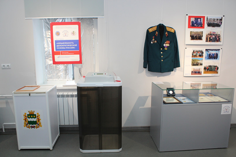 Внимание организаторы выборов уделили председателям избирательной комиссии области разных лет. Целая экспозиция посвящена личности Анатолия Куцоножко, который работал с 1997-й по 2011 год. В глаза бросается нарядный китель полковника органов внутренних дел, украшенный не только ведомственными наградами, но и значком «За заслуги в организации выборов» от ЦИК России.