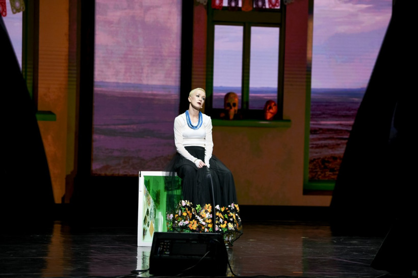 — Спектакль очень женский. В нем немного эстетики, немного биографии и много музыки, — рассказала Дарья. — На сцене постоянно находятся три главных героя: Фрида, которую играю я, музыка Петра Дранги и видеоинсталляция, которая погружает нас в фантазийную мексиканскую реальность.