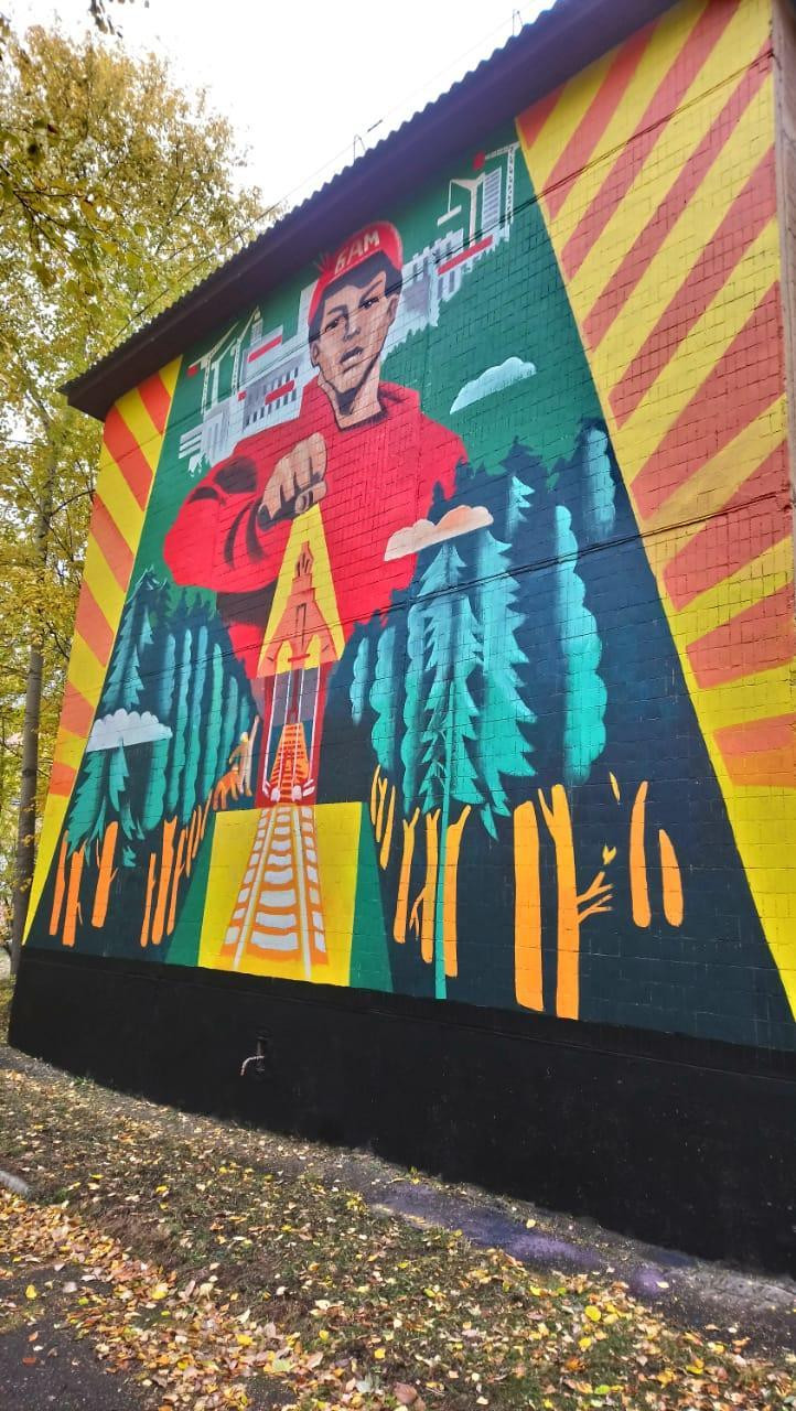 Ранее Павел закончил разрисовывать две стены жилых многоэтажек на главной улице столицы БАМа. В эту субботу, 16 сентября, жителей и гостей Тынды приглашают на торжественное открытие мурала, посвященного 50-летию Байкало-Амурской магистрали.