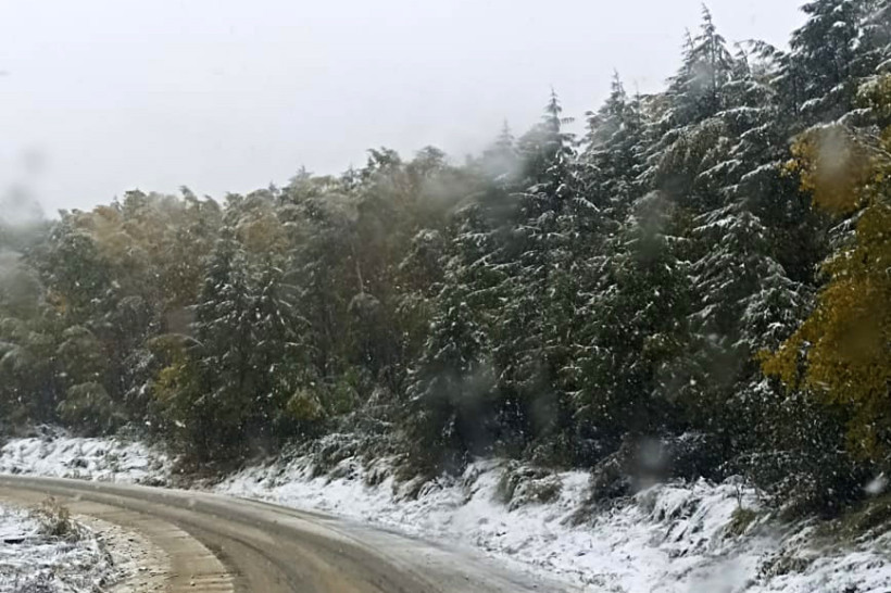 А накануне утром водители по горных перевалах по дороге в районный центр попали в снег. На некоторых участках поломаны деревья.