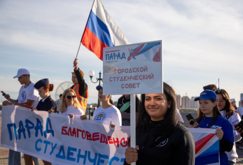 Городской парад первокурсников в Благовещенске проходит второй год. Организаторы мероприятия — отдел по делам молодежи мэрии и Благовещенский государственный педагогический университет, напомнили в пресс-службе городской администрации.