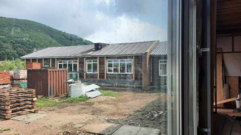 На все работы из федерального бюджета выделено 63,4 миллиона рублей. Сейчас рабочие делают облицовку стен по металлическому каркасу, штукатурят стены и устанавливают чугунные радиаторы. В целом в одноэтажном деревянном здании утеплят стены, обновят фасад, заменят кровлю и инженерные системы. На время ремонта ребята учатся в здании бывшего ФАПа.