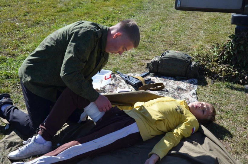 По легенде местный аэродром захватила группа условного врага с автоматами и дымовыми шашками. Команды должны были ликвидировать угрозу. Юнармейцы метали гранату, спасали раненного, пролазили под колючей проволокой, стреляли, преодолевали полосу препятствий, проходили условно заражённую местность в противогазе.